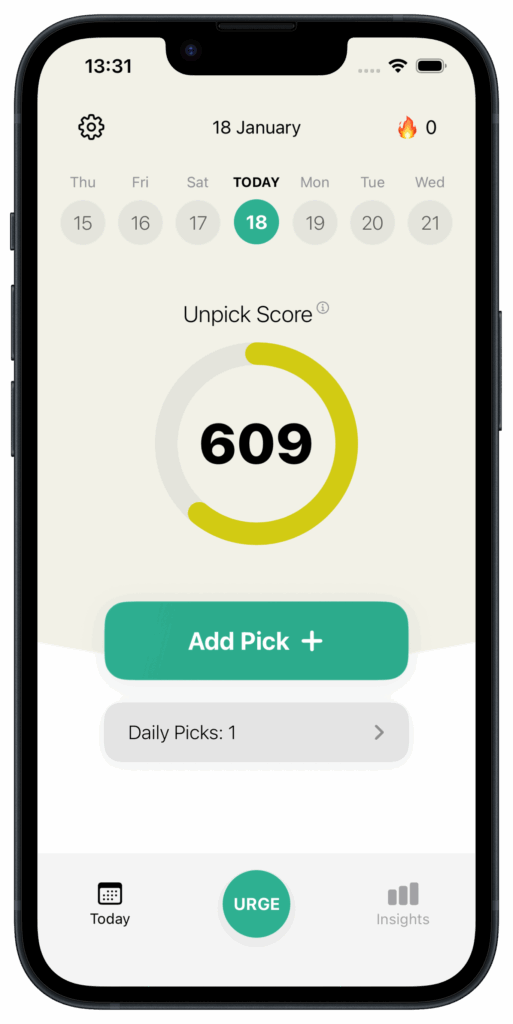 Unpick analyzes your picking behavior over time to calculate your Unpick Score, giving you a simple starting point and a clear way to see improvements.